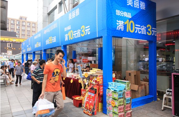9月13日——19日,翠屏区商务局组织 “千企百业齐惠民”活动,由市、区各大型商贸流通企业、各行业协会牵头开展各类促销、让利、周年庆活动。在活动期间,叙府商城积极参与,商城欧克欧和苏泊尔专柜与各行业协会、商贸流通企业、食品生产企业在合江门广场集中展销,商城九阳、膳魔斯、飞利浦、特百惠、莱克、美的专柜在鲁家园临街侧展卖感恩回馈社会。活动现场,商城按区商务局要求悬挂统一促销活动宣传标语及展卖品牌标识,各品牌优惠力度较大,广大消费者踊跃选购,受到一致好评。