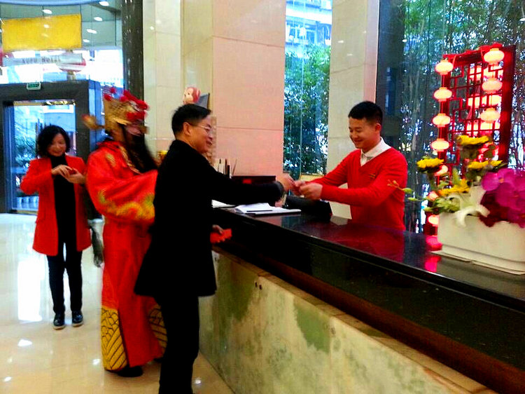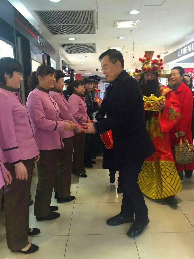 2016年2月8日大年正月初一早晨,叙府商城举行新春开店仪式后,公司党、工领导由公司副董事长、副总经理侯中华带队看望春节期间叙府商城、叙府宾馆工作的全体员工,致以新春的问候,感谢他们为广大消费者能够过上一个幸福祥和的春节而牺牲与家人团聚的宝贵时间依然坚守在各自岗位。每到一处,公司领导都一一与员工亲切握手,道一声辛苦、送一份祝福,向每位员工派发“利是”小红包(共计438个)。广大员工深受鼓舞,纷纷表示将以最饱满的工作热情投入到春节期间的工作中去为顾客提供优质的服务。此外,公司在春节法定节日加班期间,还为当值倒班员工准备了丰盛的工作餐,为他们解决了就餐问题。