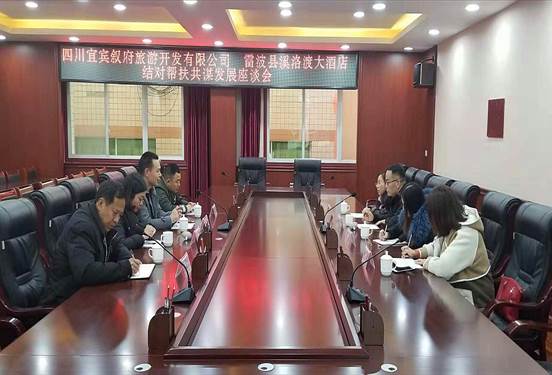 四川宜宾叙府旅游开发有限公司根据区委制定的《宜宾市翠屏区对口帮扶协雷波县全域结对帮扶工作方案》安排部署,于2018年12月3日主动与雷波县溪洛渡大酒店联系并确立了结对帮扶关系。12月5日—6日,我公司副董事长、总经理侯中华一行五人赴雷波县溪洛渡大酒店开展结对帮扶工作。