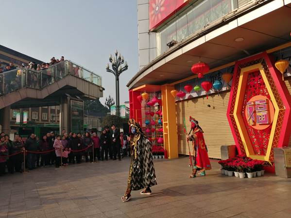 瑞犬凯歌辞旧岁,金猪送福迎新春。为感恩广消费费者的厚爱,祝福大家在新的一年里吉祥如意,商城自开业来,每年的大年初一早晨均举行特别开店仪式。2019年2月5日清晨,叙府商城大门前已是人头攒动,聚满了前来围观的市民。今年,商城准备了精彩绝伦的川剧绝活变脸表演和热闹非凡的南狮表演。首先出场的是川剧艺术瑰宝——变脸,2名川剧艺术家表演的吐火、变脸让大家赞不绝口。随后,一对威猛的南狮在锣鼓喧天中一展雄姿,南狮轻灵敏捷、刚柔相济的欢腾跳跃,贺岁,拜年、采青、吐福等一系列高难度动作一气呵成,将叙府人筚路蓝缕、昂扬向上和奋发进取精神表现得淋漓尽致,现场喝彩声此起彼复,处处洋溢着欢乐喜庆的节日气氛。大家纷纷拿起手机记录、分享这精彩的瞬间。紧接着,公司和商城的领导为醒狮点睛,十点整,伴随着欢快的“开门红”乐曲,现场飞舞的缤纷礼花和红色气球的拉爆声四起,叙府商城管理人员共同开启了商城大门。霎时,人流簇拥着一对南狮涌入商城。叙府商城今年准备了高品质的商品和丰富的礼品,将在春节黄金周期间带给广大消费者一场购物盛宴。