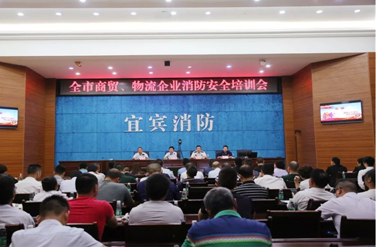 为提高全市商贸系统消防安全管理能力,落实消防安全主体责任,预防和减少各类火灾事故的发生。6月27日宜宾市商务局联合宜宾市消防支队在宜宾市消防支队会议中心召开全市商贸、物流企业消防安全培训会,全市100余家商贸、物流企业负责人及管理人参加了此次培训会,市商务局党委书记、局长刘刚,市消防救援支队副支队长任壮出席会议并讲话,市商务局党委副书记杨剑主持会议。我公司安全负责人和消防管理人也参加了此次培训会。